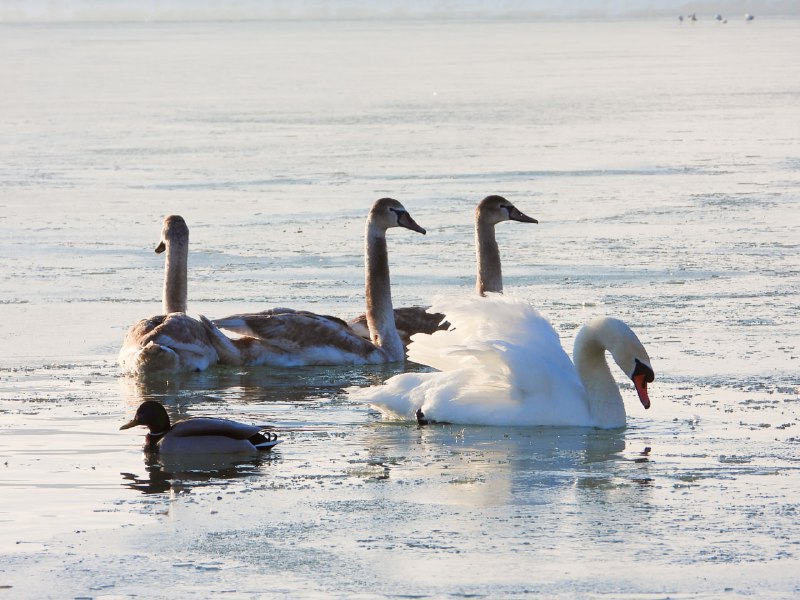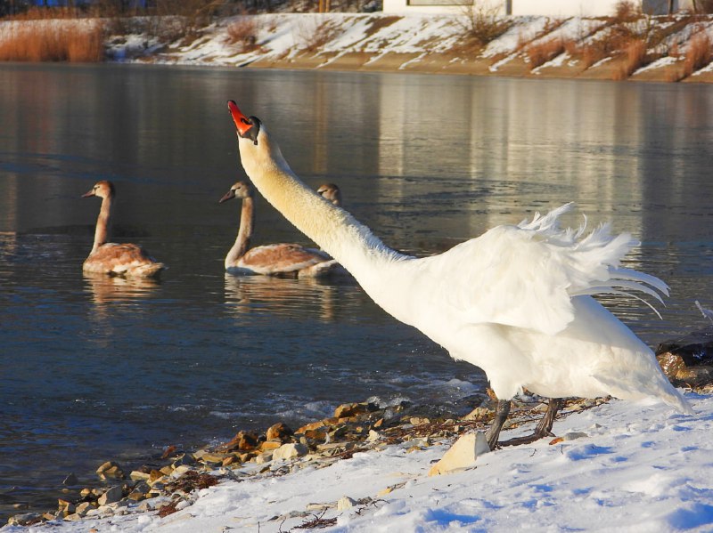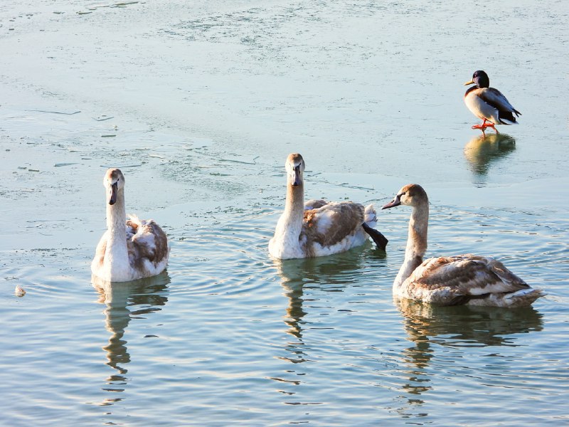 На озеро прилетели лебеди. Один болеет…