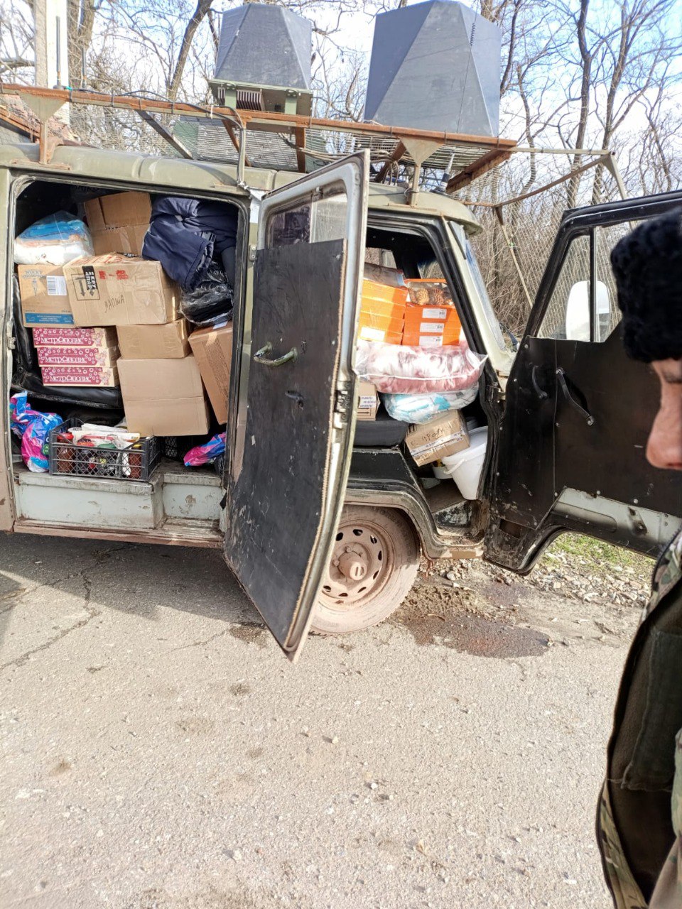 Перед поездкой здесь по месту собираем гумпомощь. Жители могут в последний момент позвонить уже перед отправкой, так, за конфетами детворе заезжал в с. Большие Хутора. Еще жены мужьям персональные посылки передают через нас.