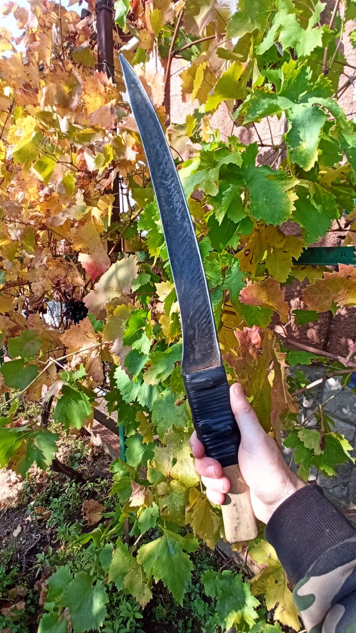 Как оказалось, это идет процесс ручной чеканки, и машет виноградарь вовсе не шашкой, а самодельным орудием труда.