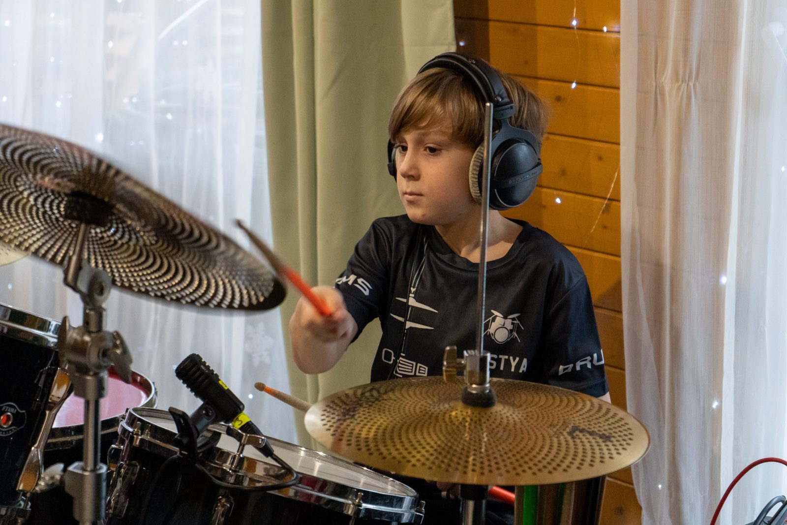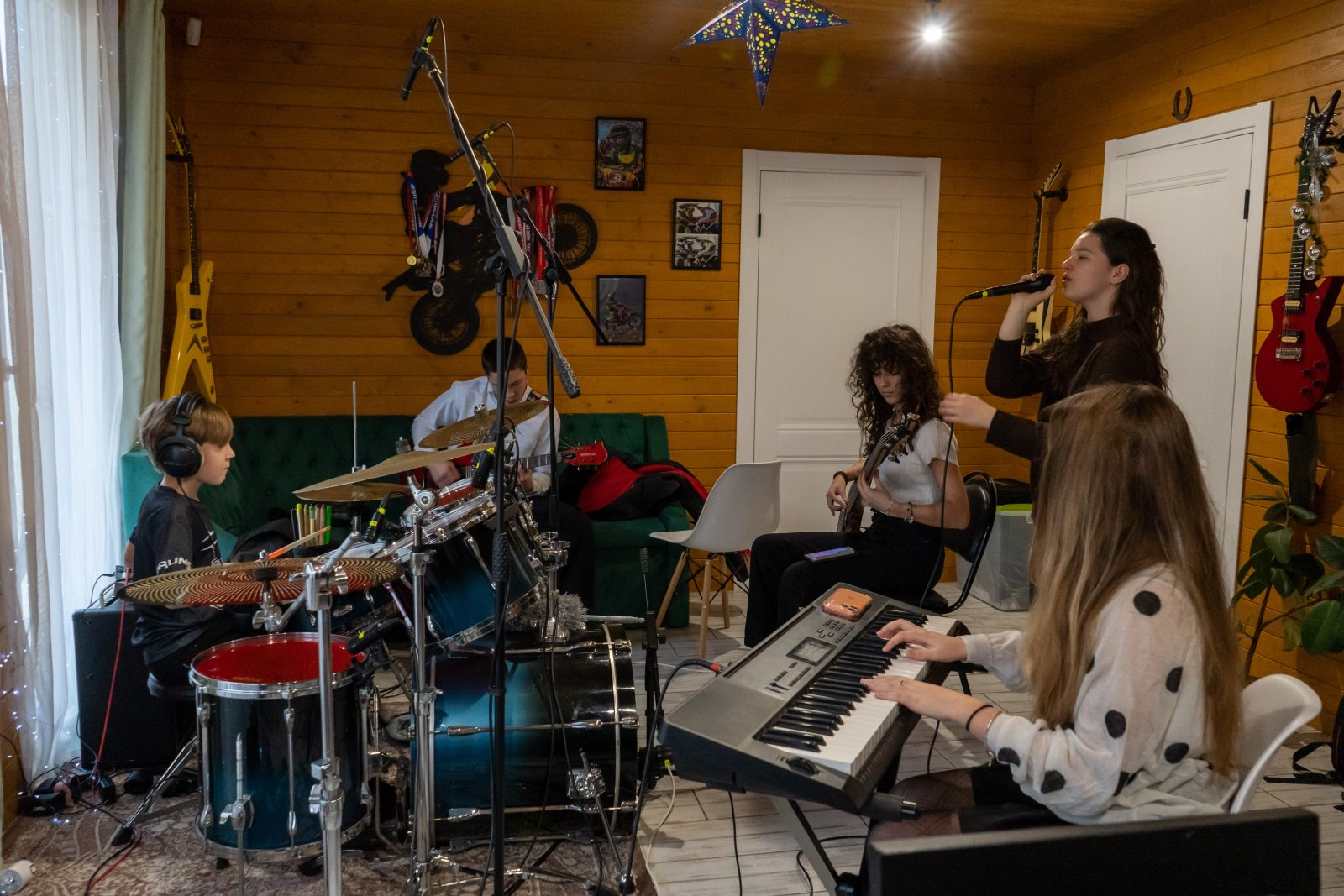 Мы пришли на репетицию ребят и увидели горящие глаза, красноречиво говорящие о том, что музыкальное творчество с головой поглощает юных музыкантов. Все сразу берутся за музыкальные инструменты, возбужденно подбирают аккорды, распеваются, забыв о еде, усталости. В воздухе царит творческая атмосфера, драйв, три часа репетиций пролетают как один миг!