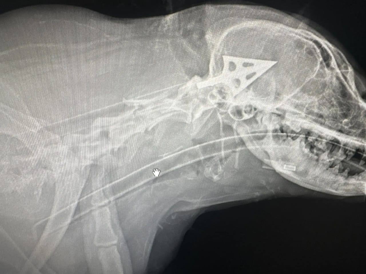 В клинике «ЮгВет» врачи были потрясены. Как минимум три попадания в тело. Одна стрела застряла внутри. Следы от дротиков. Это не случайность. Это не «шалость». Это целенаправленная жестокость.